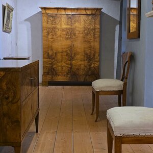 Ein Schwerpunkt liegt auf Möbeln des frühen 19. Jahrhunderts, insbesondere des Biedermeier und des Empire. Der Stil des Biedermeiers überzeugt durch klare Linien, das Empire nimmt den Stil der Antike wieder verstärkt auf. Ausgewählte Furniere und handwerkliche Präzision zeichnen diese Möbel u.a. aus. Ergänzend führen wir Möbel des Barock und des Klassizismus (Louis-Seize), die jeweils eigene gestalterische Akzente setzen.