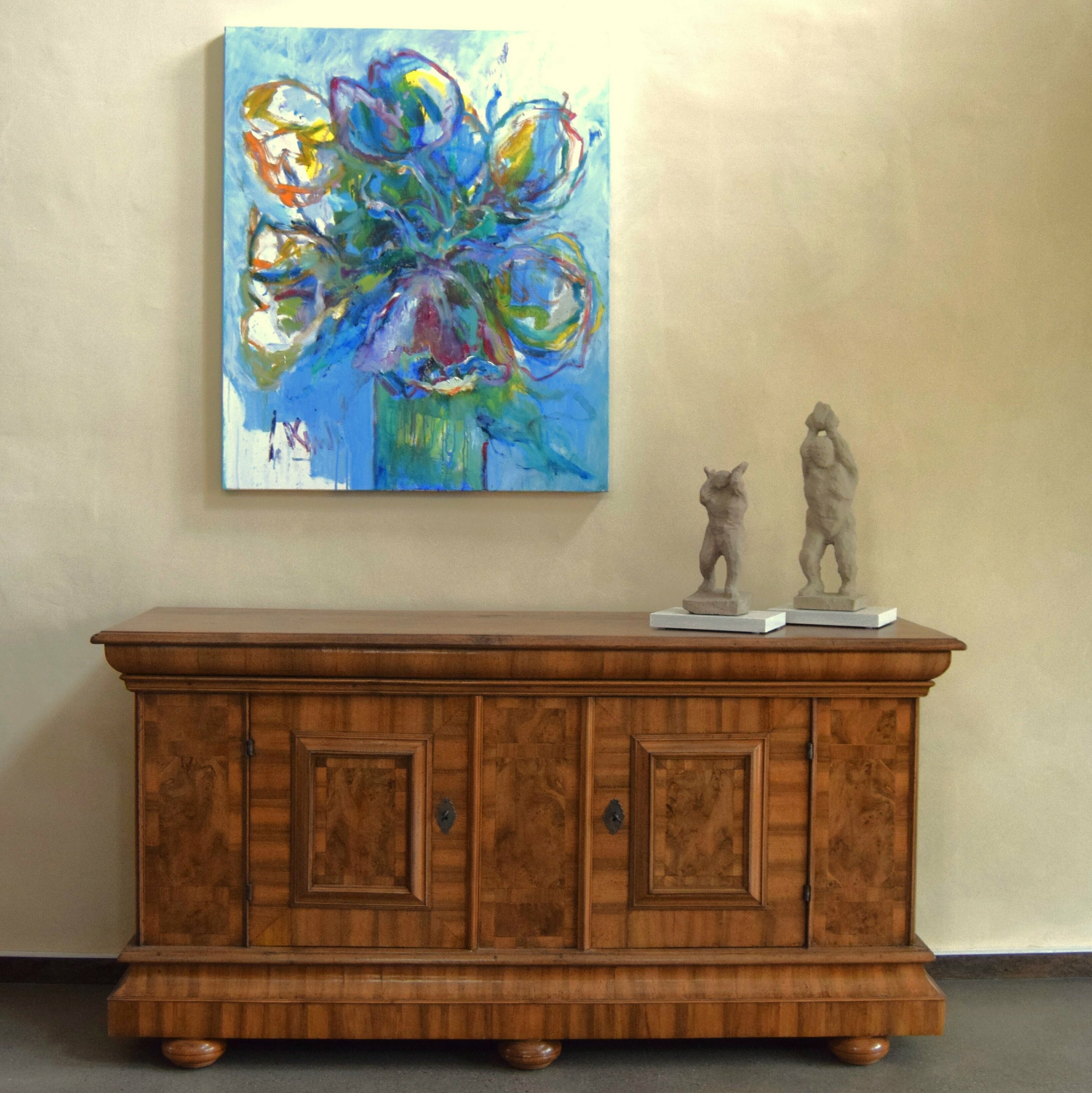 Einen schönen Platz für dieses seltene Barockmöbel, könnte ich mir in einer Eingangshalle oder einem großzügigen Wohnbereich, in Kombination mit einem modernen Gemälde, vorstellen.