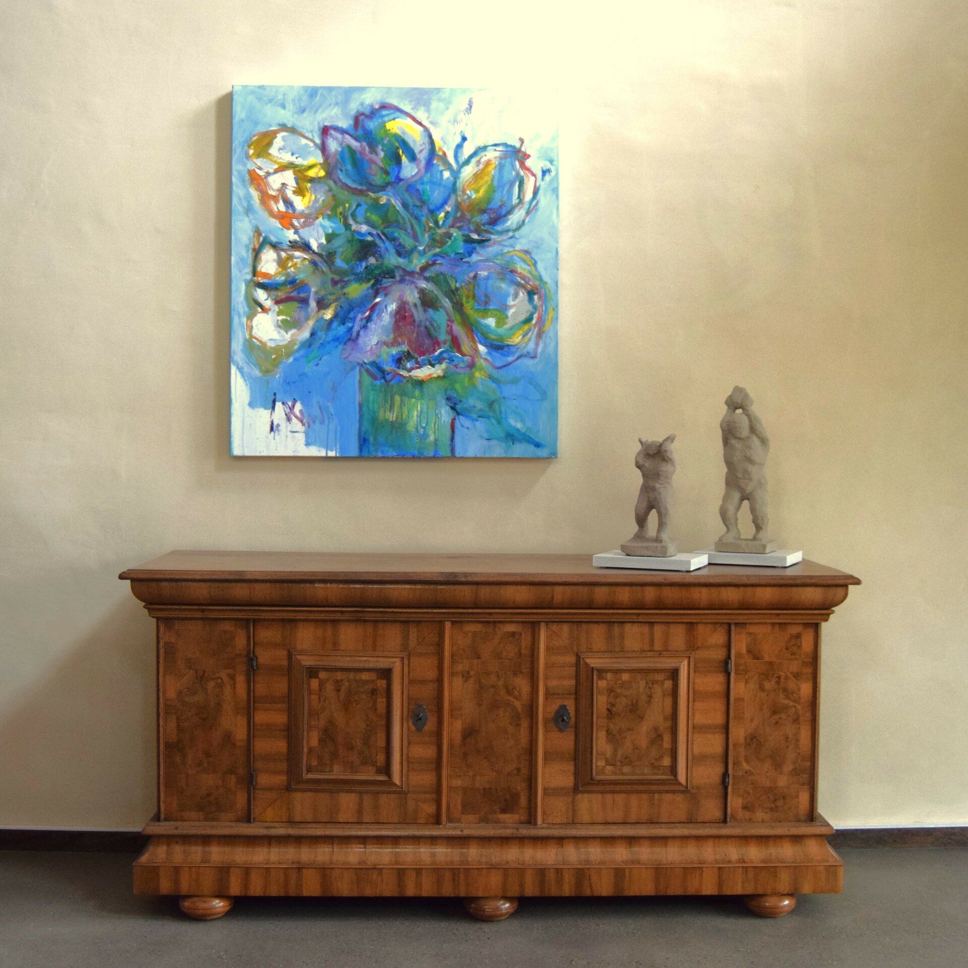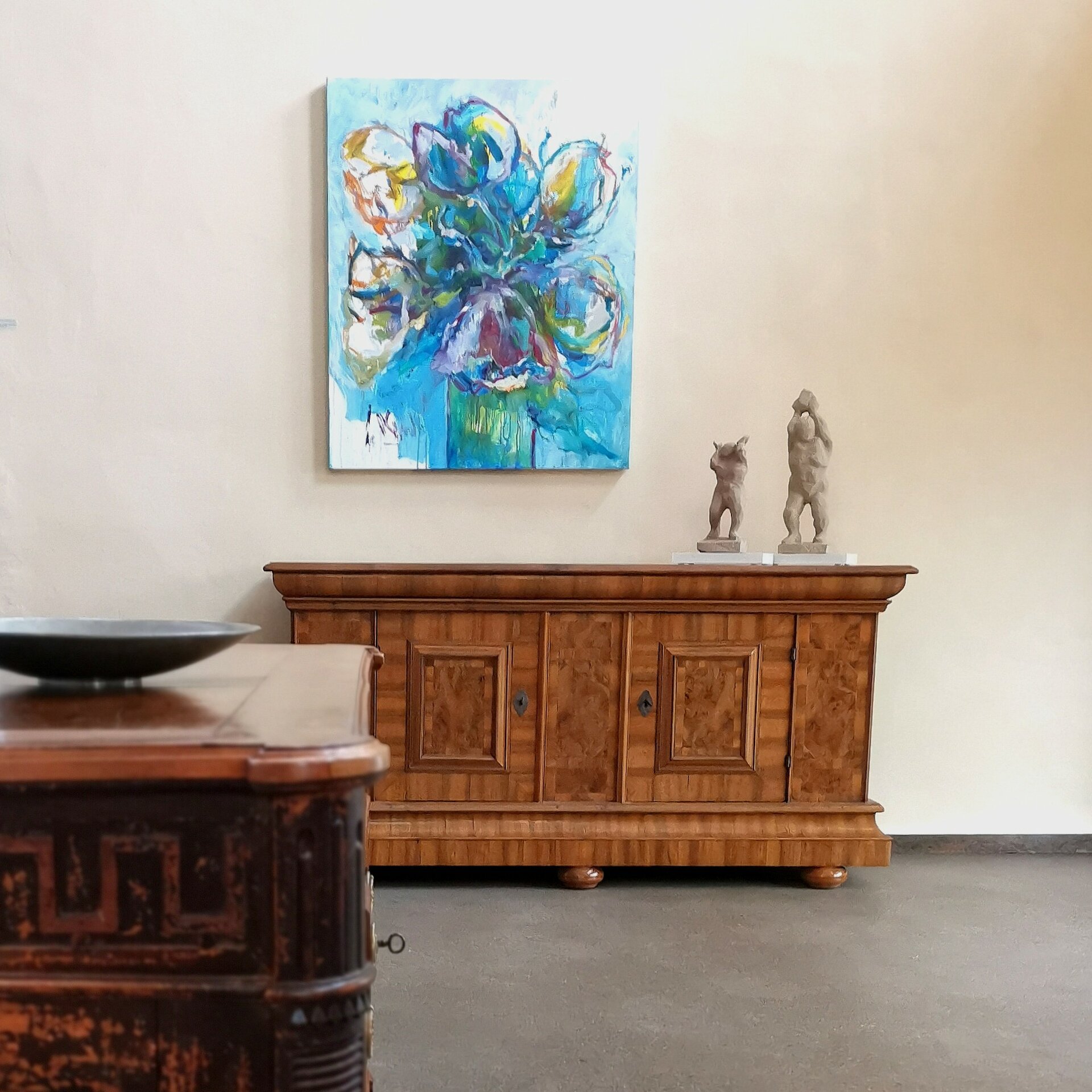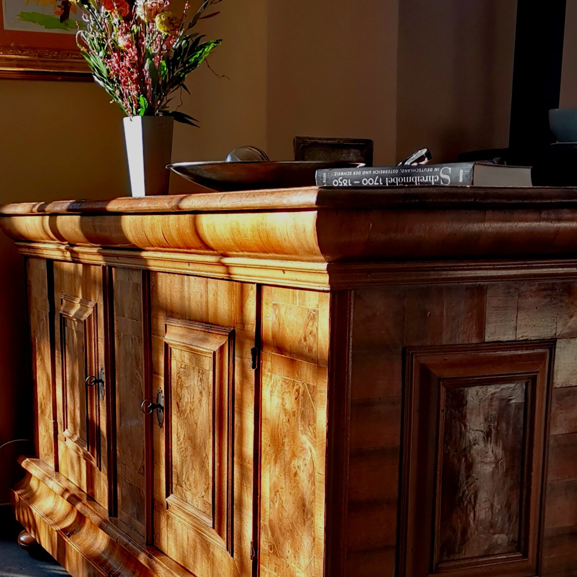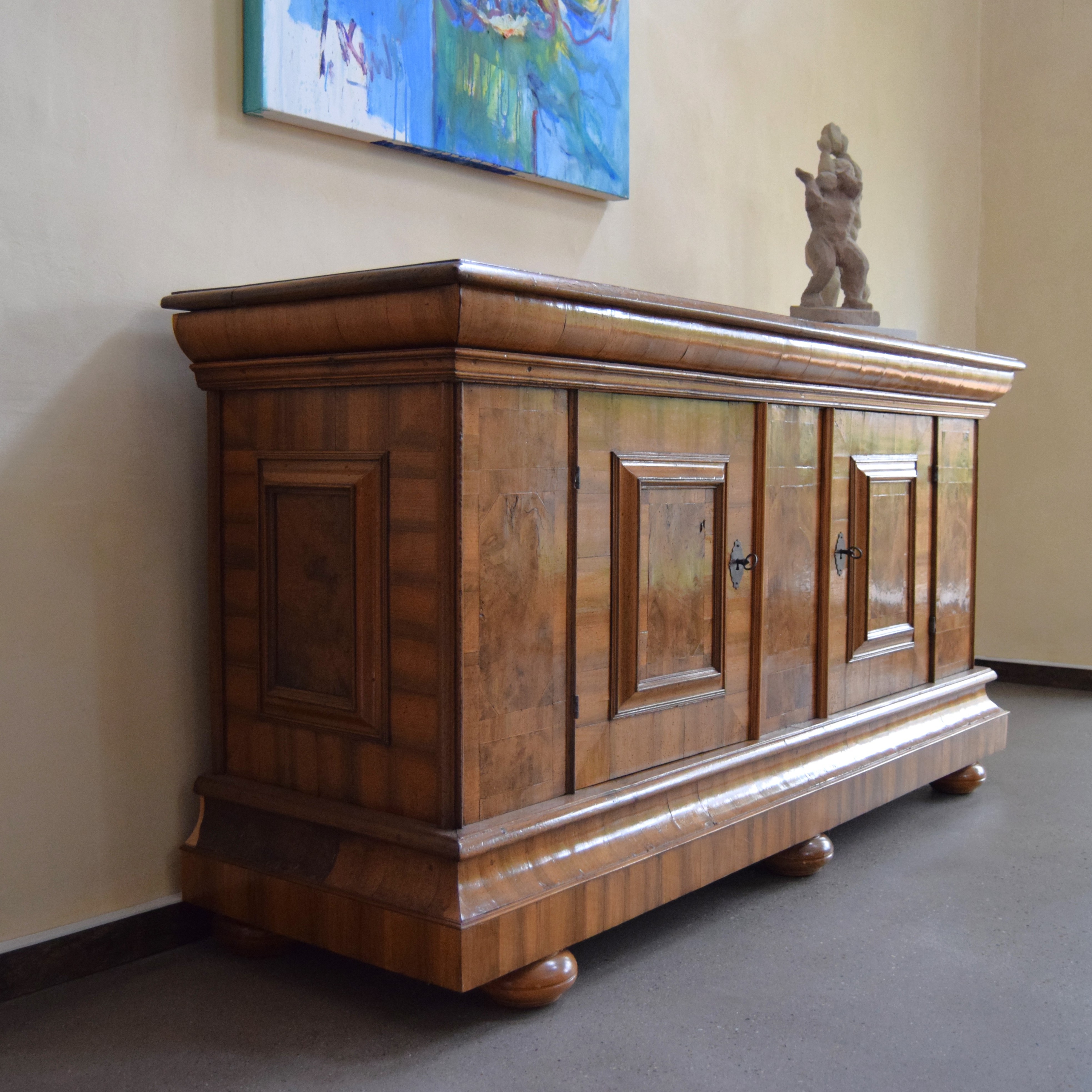 Einen schönen Platz für dieses seltene Barockmöbel, könnte ich mir in einer Eingangshalle oder einem großzügigen Wohnbereich, in Kombination mit einem modernen Gemälde, vorstellen.